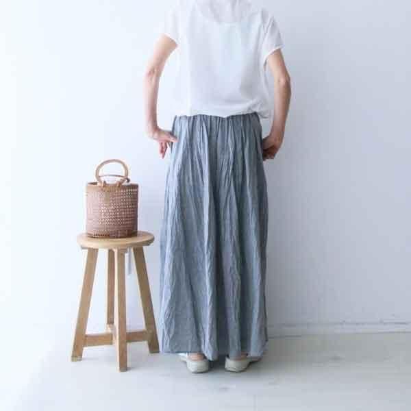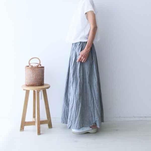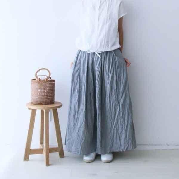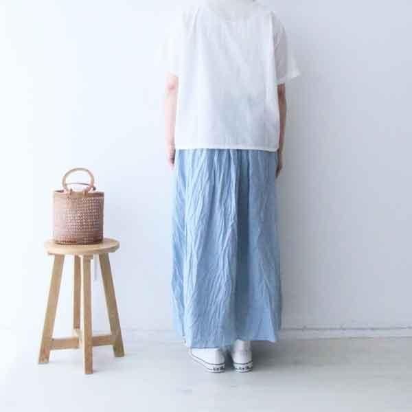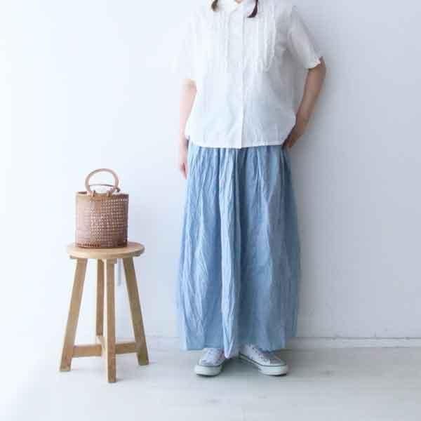 シャンブレー生地を使用したシャンブレーギャザースカートです。