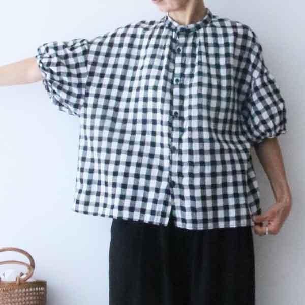 綿麻のシャリ感ある薄手のブラウス。